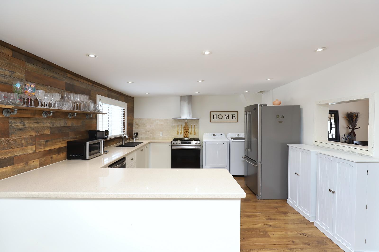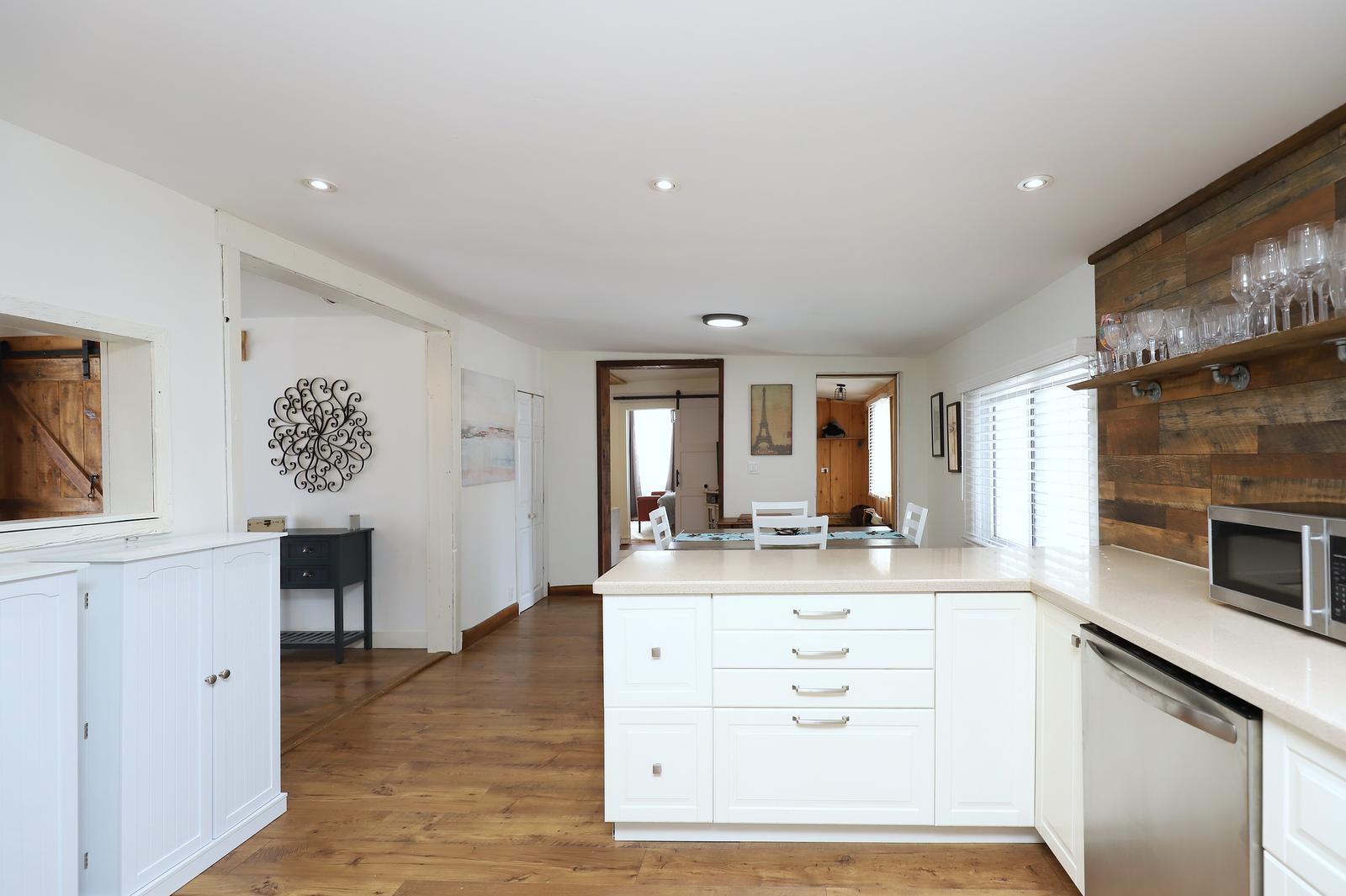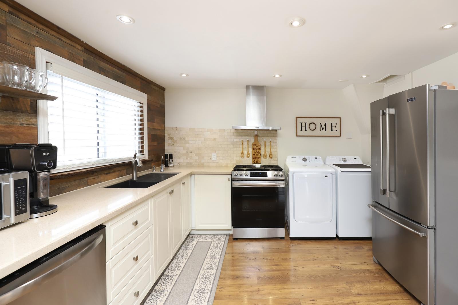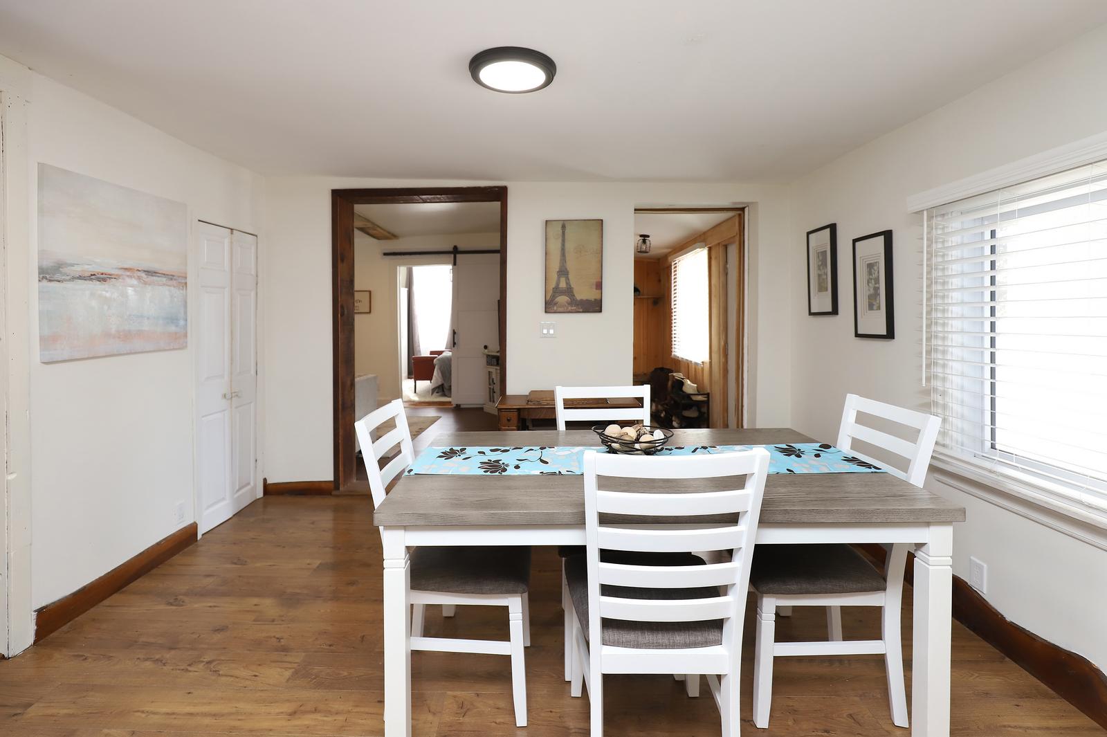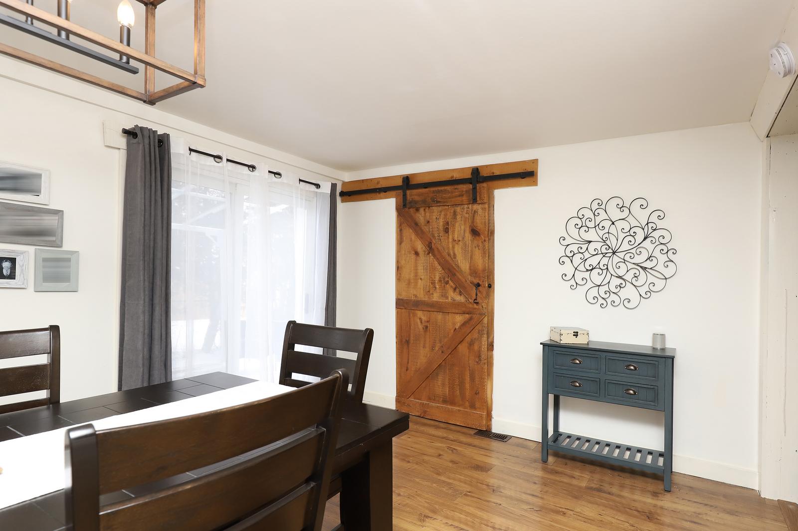 The main floor offers a renovated full bathroom completed in 2024, a bedroom, and a large kitchen with plenty of counter and prep space. Just off the kitchen is a spacious, separate dining room with a sliding door which leads to the rear deck on the east side of the home and the rear yard, making it easy to move between indoor and outdoor living during the warmer months. Laundry is conveniently located on the main floor. The appliances have all been updated within the last five years, and the updated furnace, AC and 200 amp electrical service provide peace of mind.