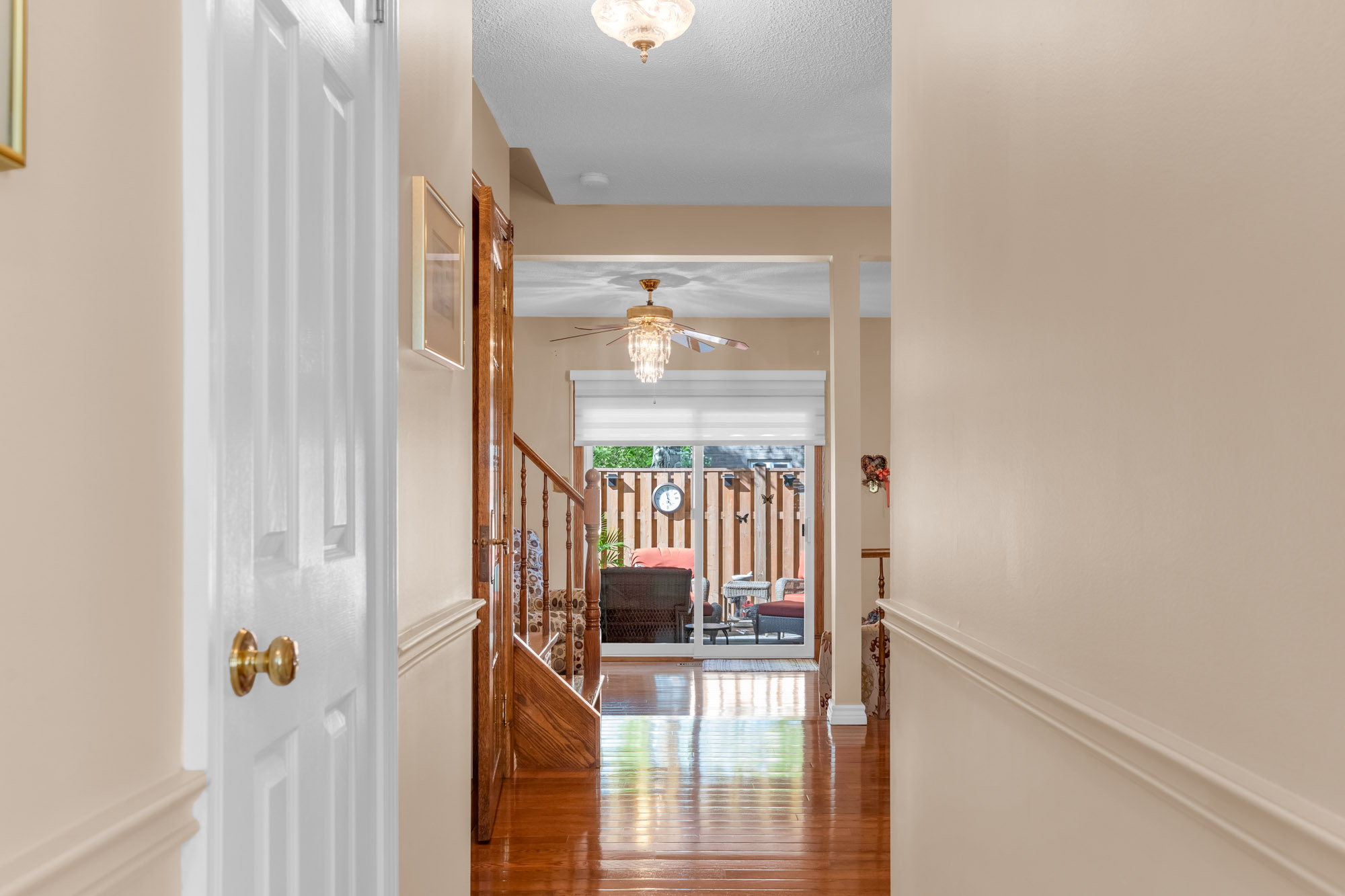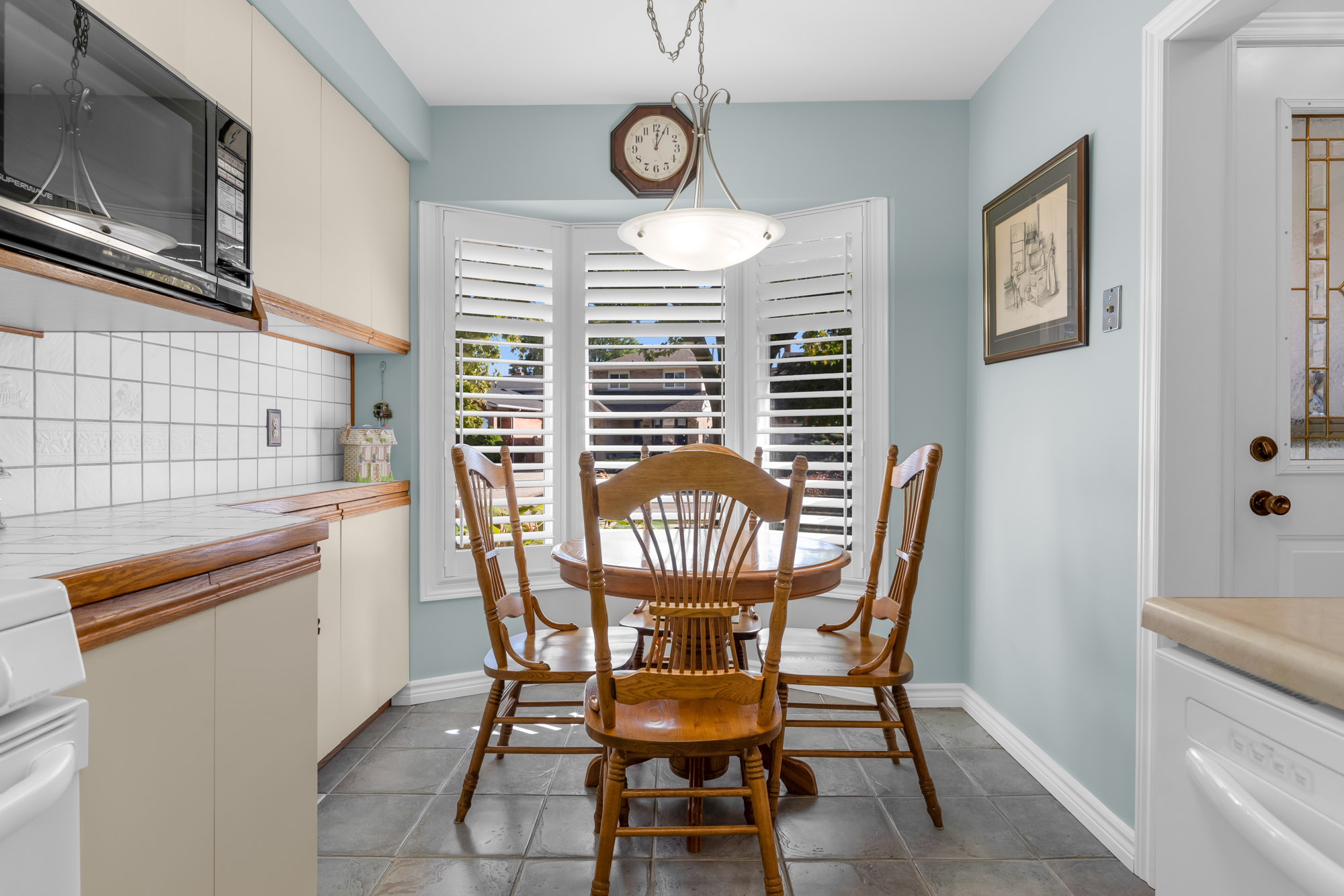 Welcome to this beautifully maintained linked two-storey home (attached only by the garage) in a quiet, well-kept Stoney Creek community. The main floor features hardwood flooring throughout the spacious living and dining areas, and ceramic tile in the kitchen. A convenient 2-pc bathroom is located near the front foyer. The large living roomoffers a cozy wood-burning fireplace (being sold as-is) and sliding doors leading to a private patio area complete with a brand-new awning, creating a wonderful spot for summer barbecues or quiet morning coffee.