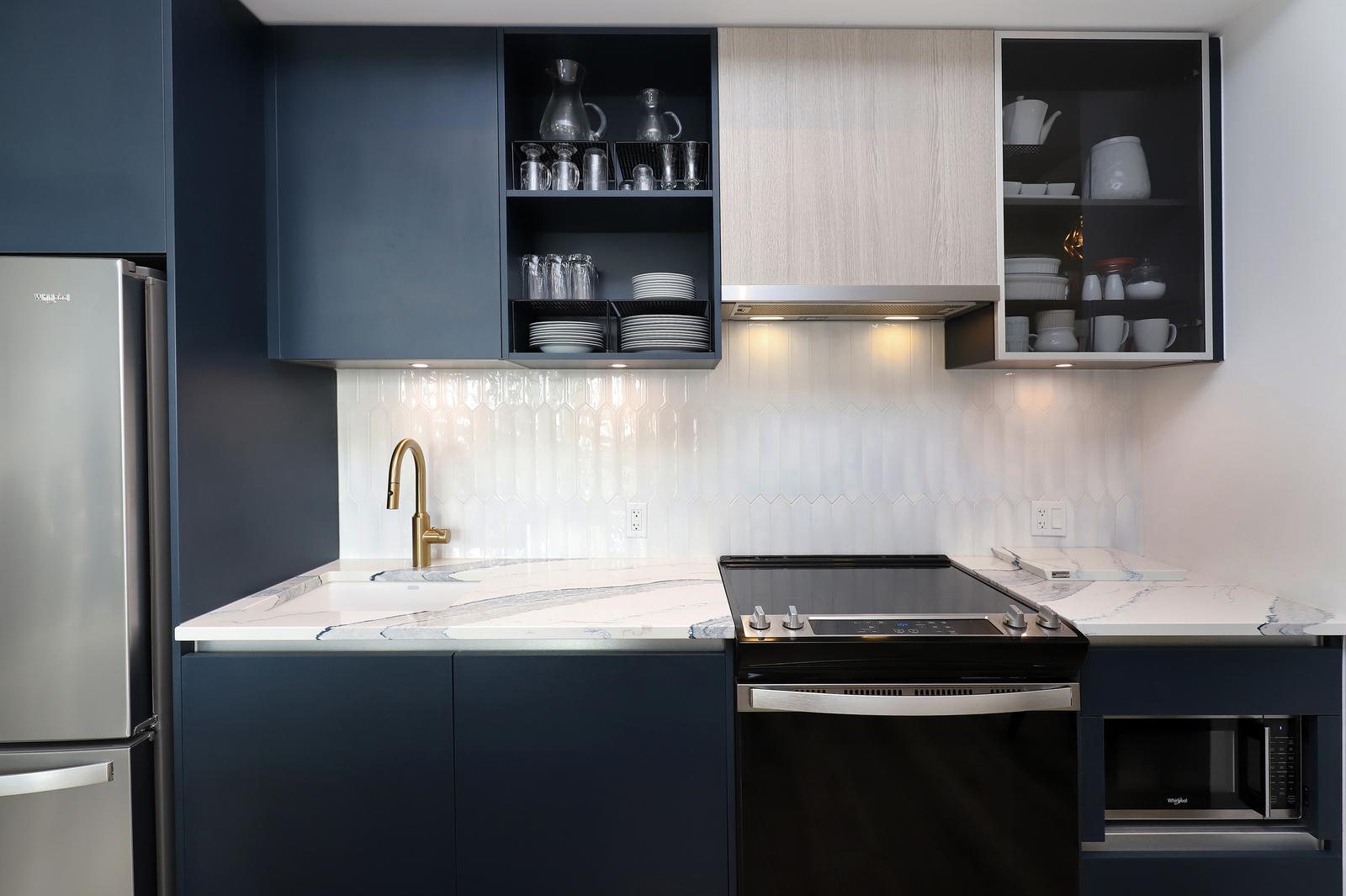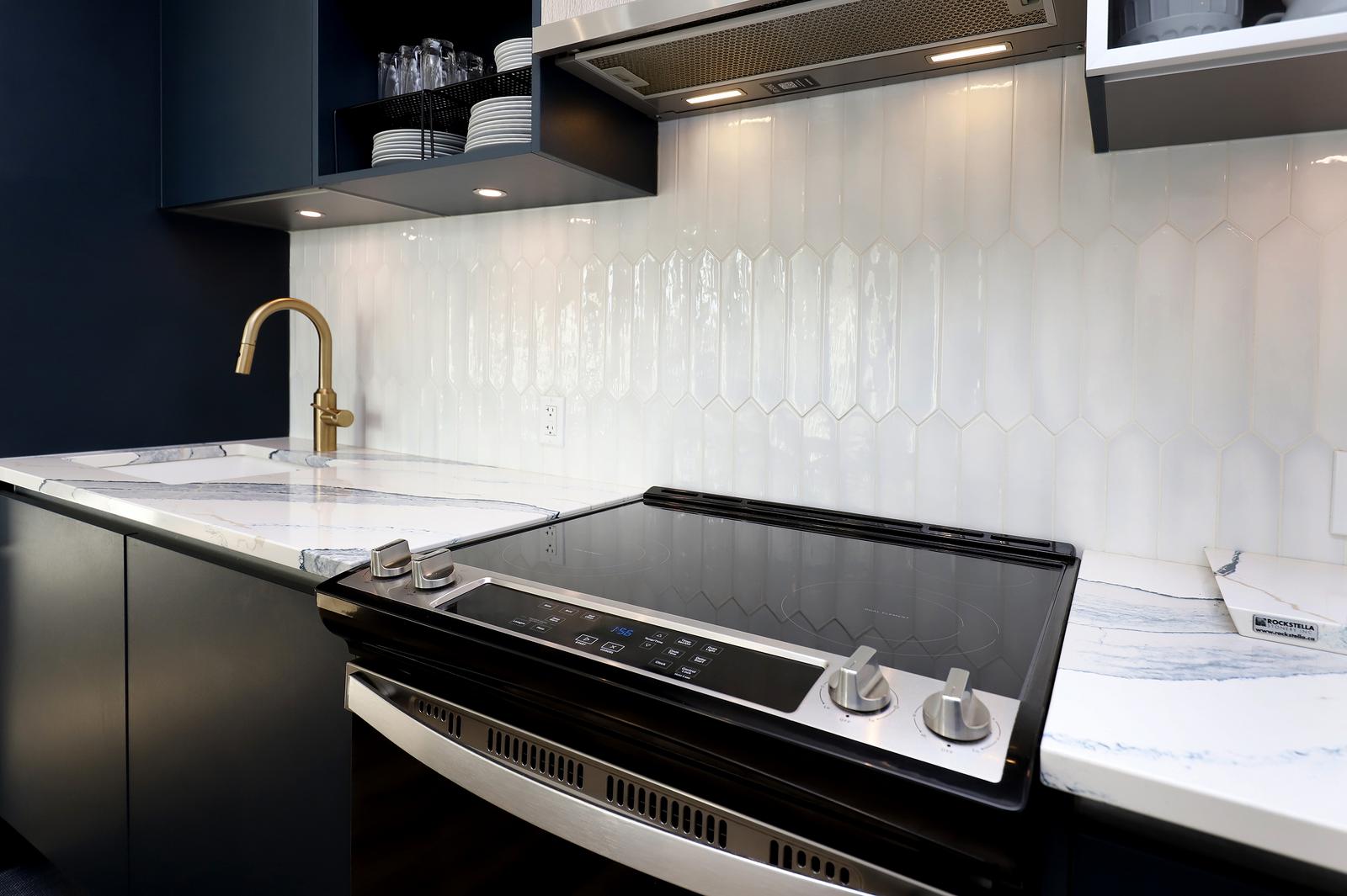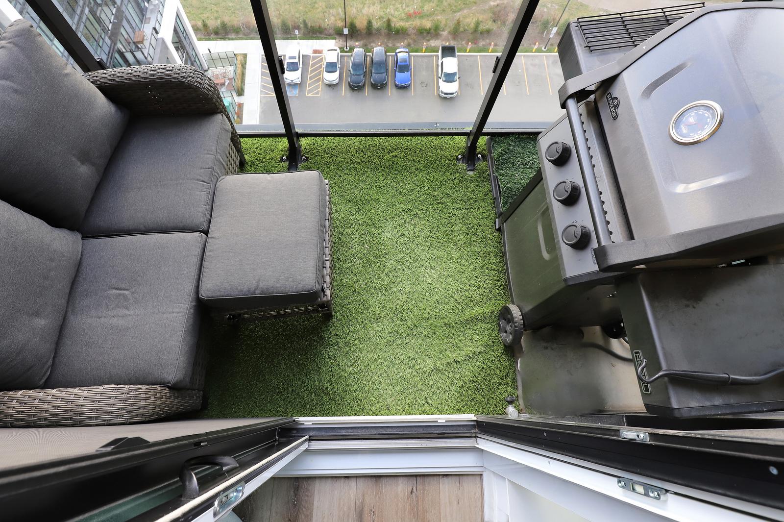 Inside, the home features luxury vinyl plank flooring and a modern Trevisana kitchen imported from Italy, complete with upgraded quartz countertops. Two balconies extend the living space outdoors, each with a gas BBQ hook-up, and the primary bedroom enjoys its own balcony, creating a private retreat to enjoy the sunset in the west. Two heat pumps provide efficient and customizable climate control.